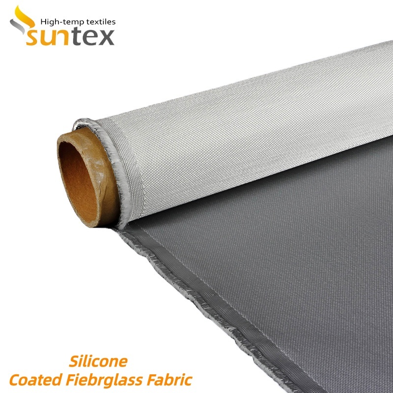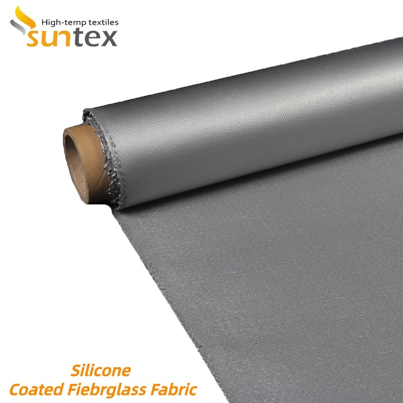 قماش ألياف زجاجية مقاوم للحريق ومقاوم للحرارة ومغطى بالسيليكون بوزن 850 جم/م2، قماش ألياف زجاجية عالي السيليكا